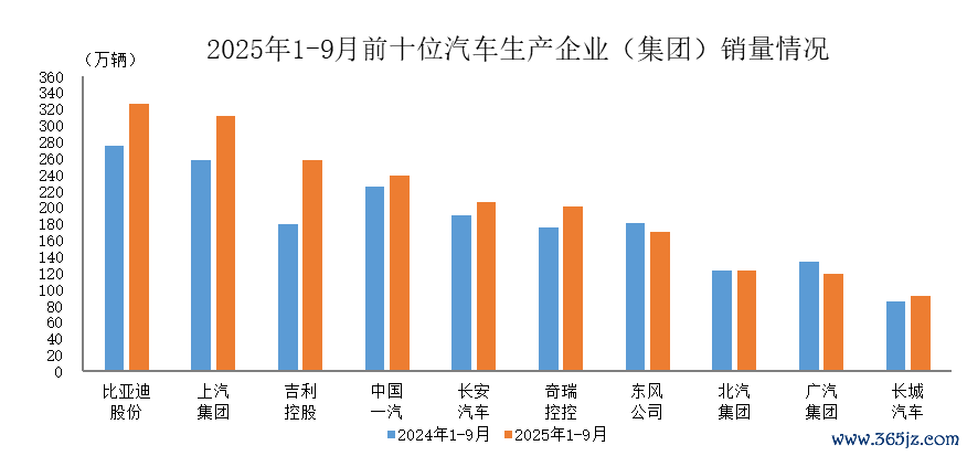 1-9月汽车销量排名前十位的企业(集团)共销售2043.1万辆1-9月汽车销量排名前十位的企业(集团)共销售2043.1万辆