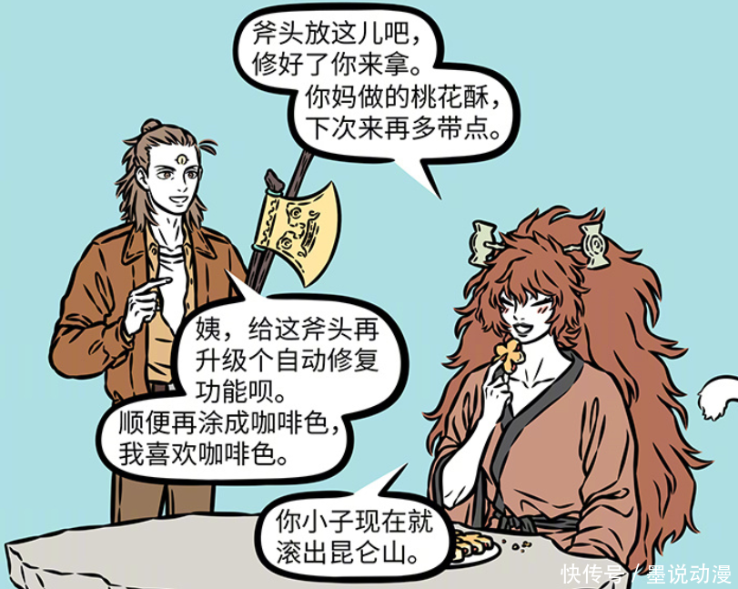 《非人哉》第1113话更新,这一话是利市被金拽根绑架。赵公明需要杨戬帮助,想要将金拽根所在的山劈开。劈开山之后宜人配资,利市也就从金拽根手里救出来。不过开山斧老化断裂,杨戬去昆仑山找西王母。这时候的西王母化为人形,杨戬想要修复开山斧,甚至还要升级。